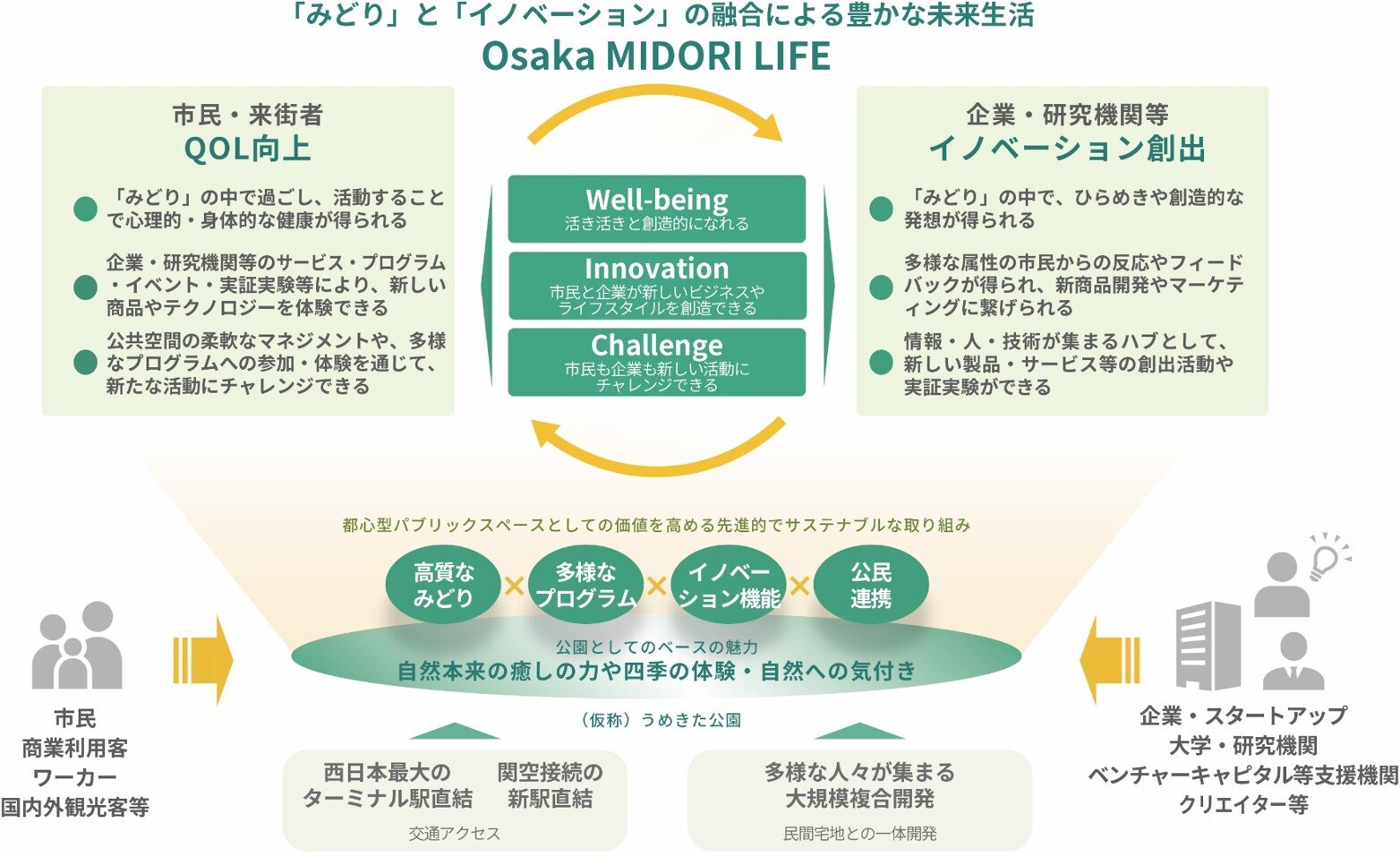 このようにグラングリーン大阪は、単なる都市公園ではなく、まち全体を育てていくための舞台装置として位置づけています。