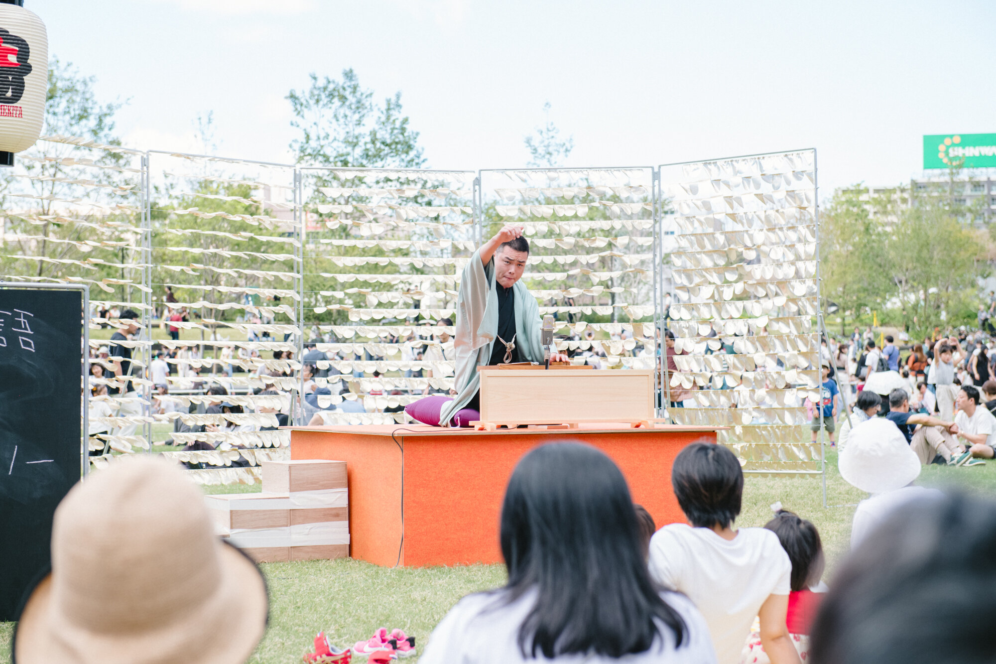 桂九ノ一さんによる寄席の様子 撮影:倉科直弘(写真左)