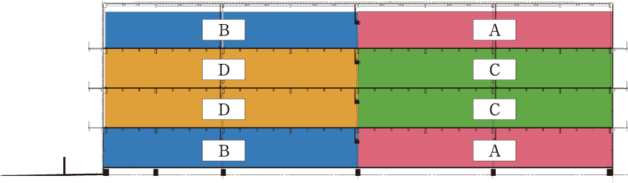 | 垂直搬送機 | 計4基(各区画に1台) 最大積載量/1.5t 最大積載寸法/W2.0m×L1.5m×H2.5m 速度/60m/min |
