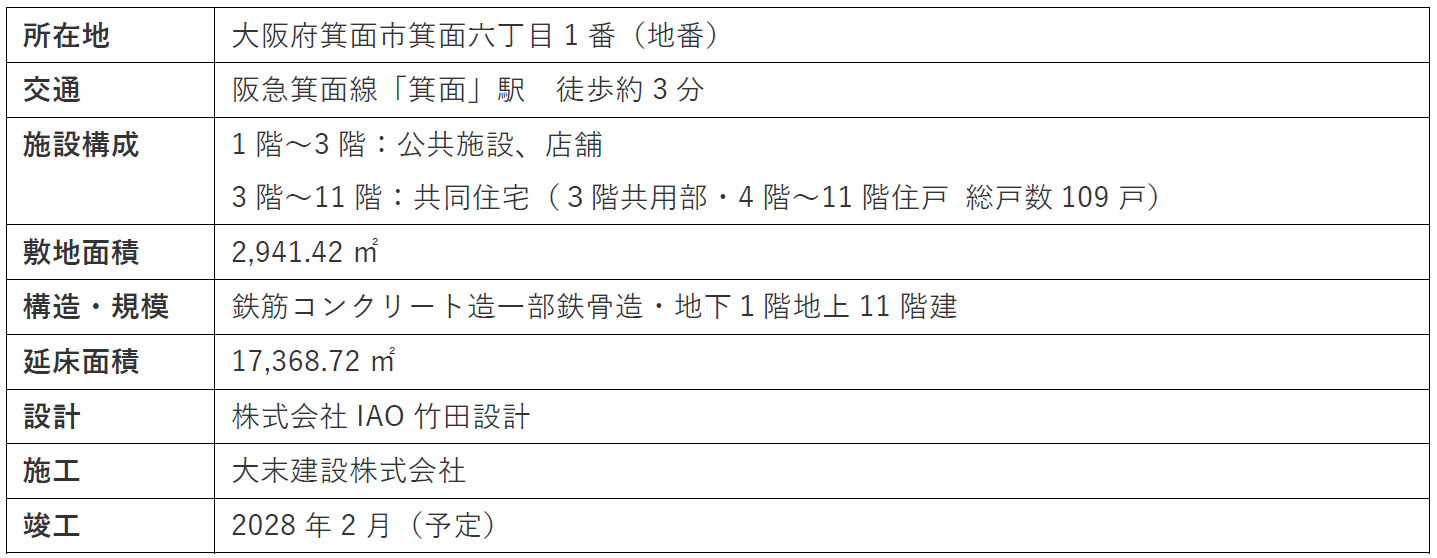 東京建物株式会社(本社:東京都中央区、代表取締役 社長執行役員 小澤 克人、以下「東京建物」)と阪急阪神不動産株式会社(本社:大阪市北区、代表取締役 社長執行役員 福井 康樹、以下「阪急阪神不動産」)は、「みのおサンプラザ1号館」(大阪府箕面市)の再生事業により新たに誕生する複合マンション(以下「本物件」)が着工しましたのでお知らせします。本事業は、関西圏で初めて「マンションの建替え等の円滑化に関する法律」に定める「マンション敷地売却制度」を活用した事例です。