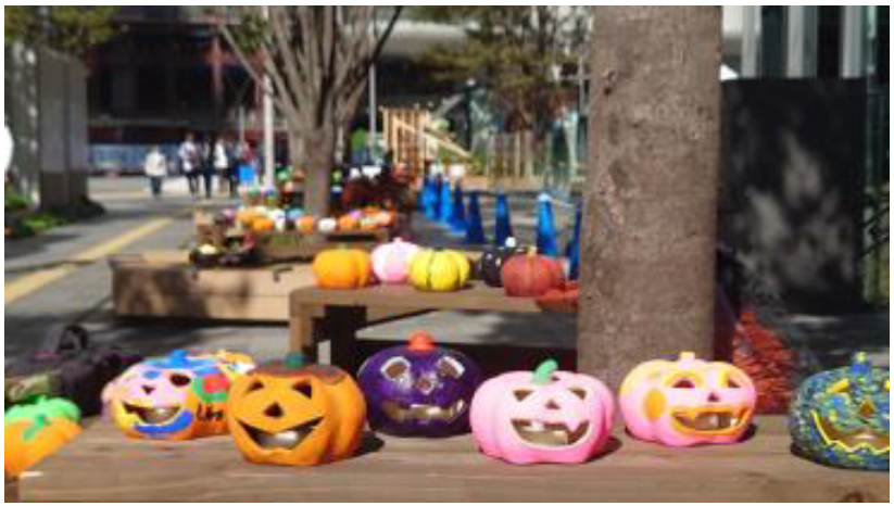 ハロウィンの時期にあわせた恒例の「かぼちゃアートランタン」の展示に加え、多彩な料理が楽しめる「キッチンカーマルシェ」、お客様のリクエスト曲をDJが流す「梅田リクエストステーション」、そして梅田への想いをメッセージやイラストで表現・共有できる「UMEDA VOICE」などを実施し、お客様に心地よいひとときを過ごしていただける空間を演出します。