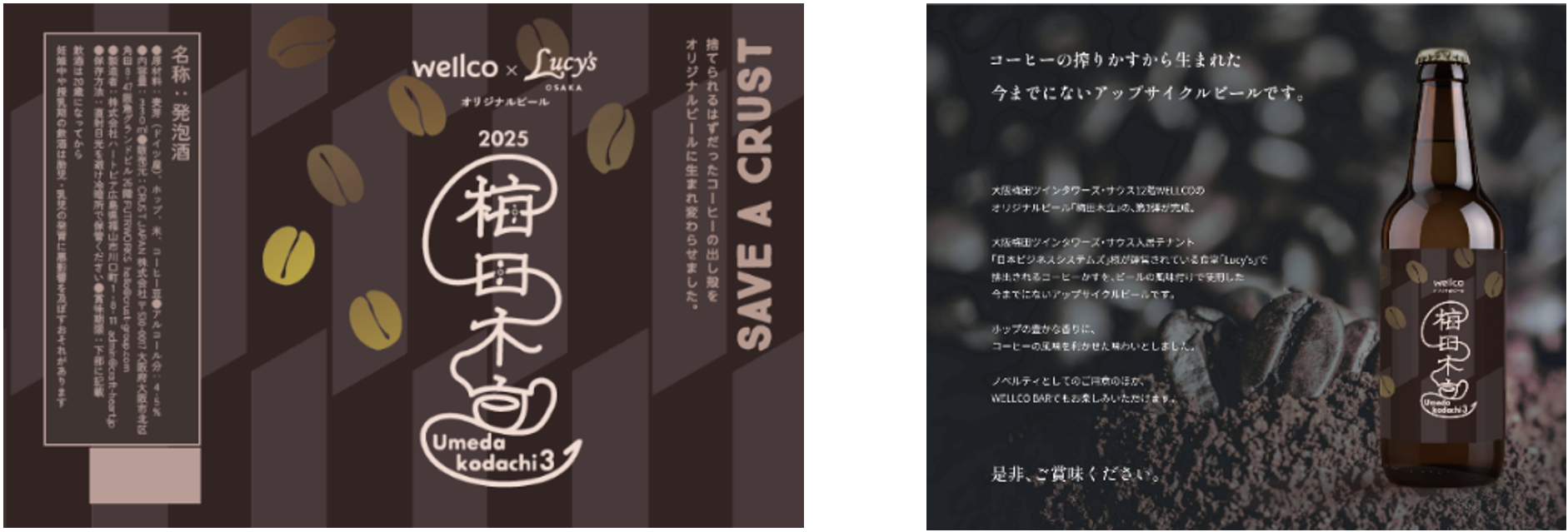今回の取組では、「Lucy's Osaka」で淹れたコーヒーの豆かすを適切な形で集め、クラフトビール「梅田木立」の原料の一つとして提供しています。