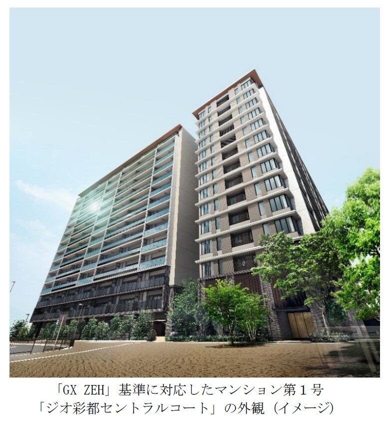 当社はこれまで新築分譲マンションにおいて、2024年度以降に販売する物件からZEH基準を標準としてきました。2027年度に導入が予定される「GX ZEH」はZEH基準よりも、さらに高いレベルでの断熱・省エネ性能が求められる新しい環境基準ですが、その制度の導入に先駆けて「GX ZEH」基準を採用し、今後計画するすべての新築分譲マンション〈ジオ〉の標準仕様を「GX ZEH-M Oriented」以上※1とします。「GX ZEH」基準対応の第1号販売開始物件としましては、2028年1月竣工予定の「ジオ彩都セントラルコート」となります。
